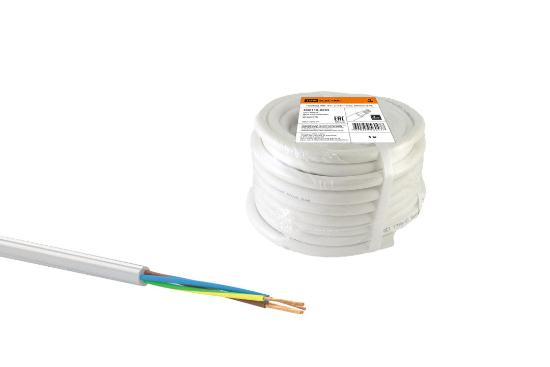 Провод ПВС 4х1,5 ГОСТ (5м), белый TDM