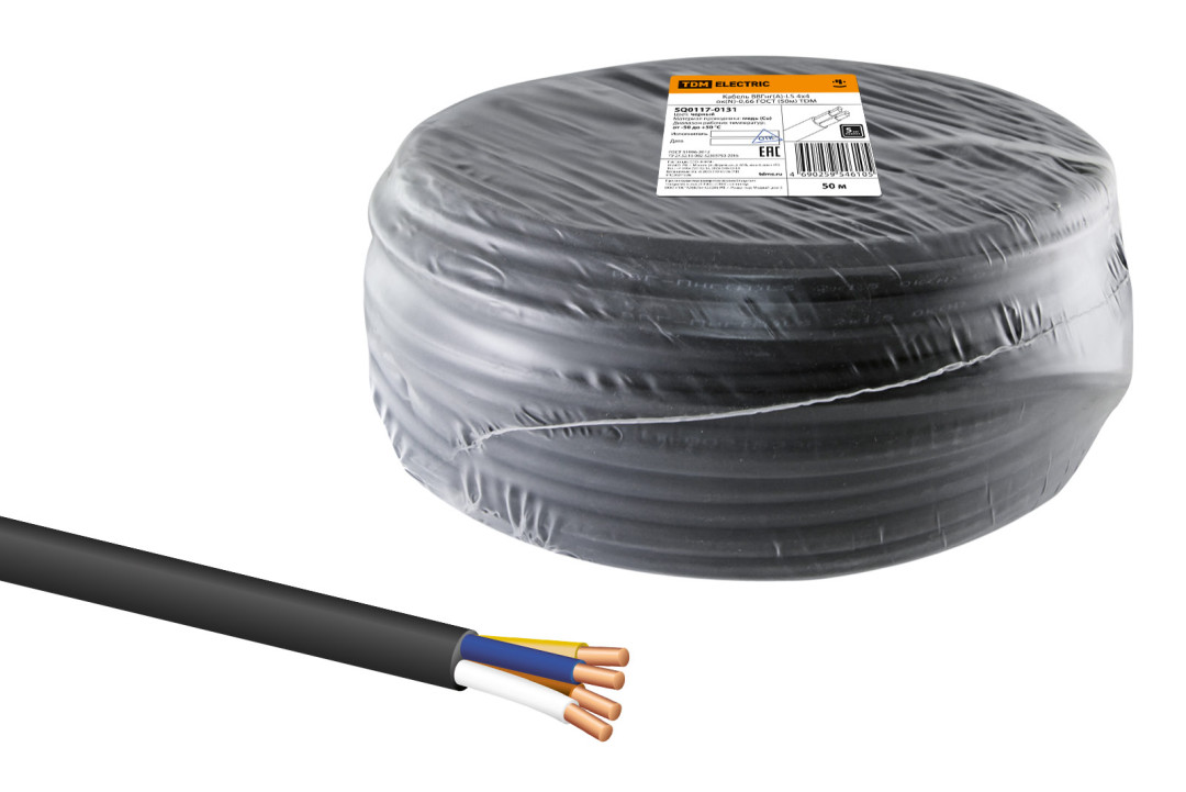 Кабель ВВГнг(А)-LS 4х4 ок(N)-0,66 ГОСТ (50м) TDM