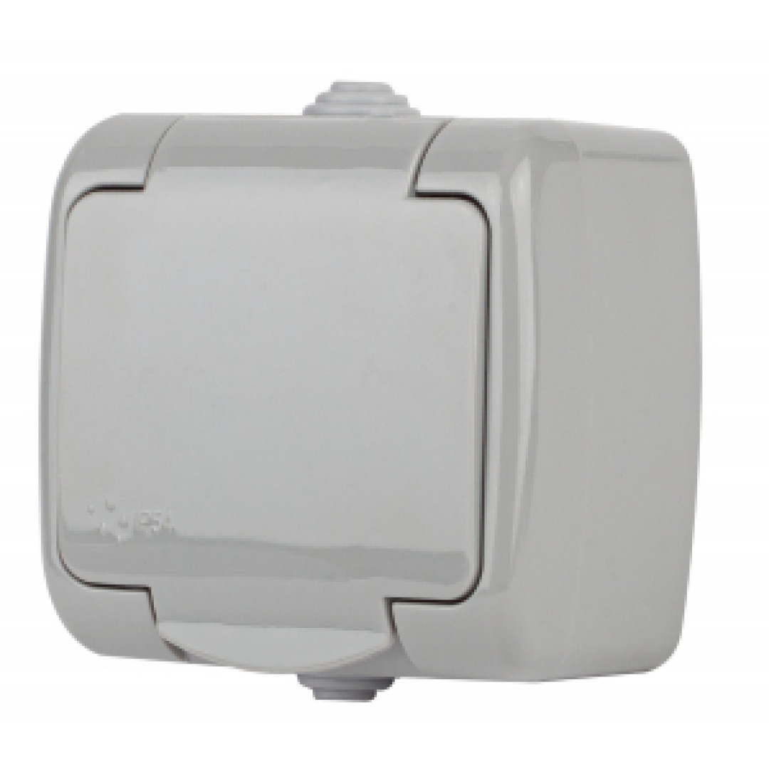 Розетка Intro Atlantic 5-202-03 с заземлением со шторками 2P+E Schuko, 16А-250В, IP54, открытой уста