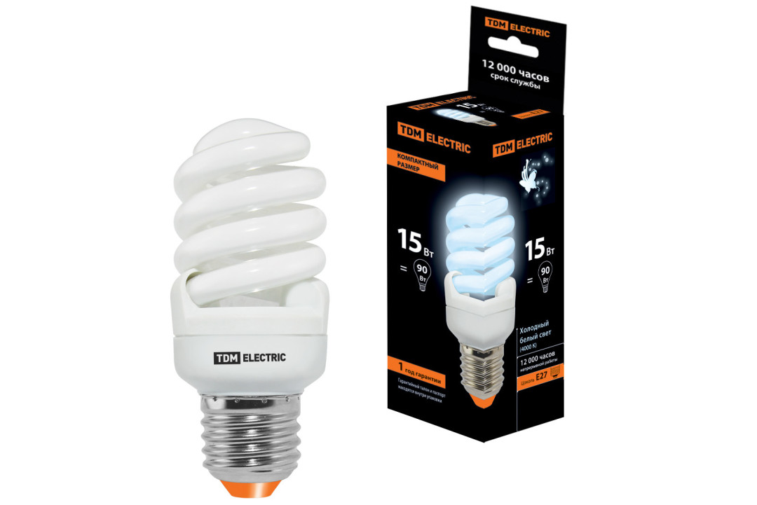 Лампа энергосберегающая КЛЛ-FSТ2-15 Вт-4000 К–Е27 КОМПАКТ (40х98 мм) TDM