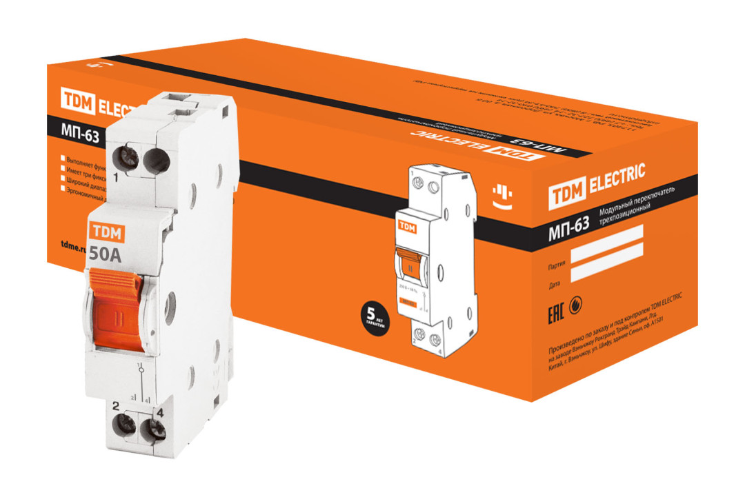 Модульный переключатель трехпозиционный МП-63 1P 50А TDM