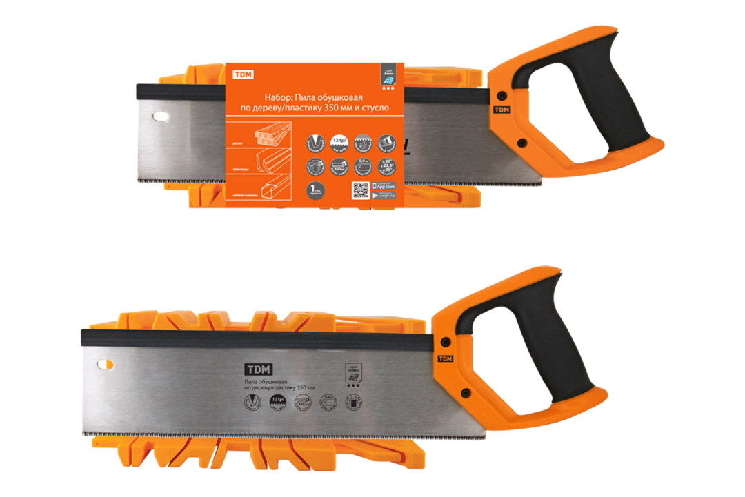 Набор: Пила обушковая по дереву/пластику 350 мм и стусло, закаленные зубья, "Алмаз" TDM