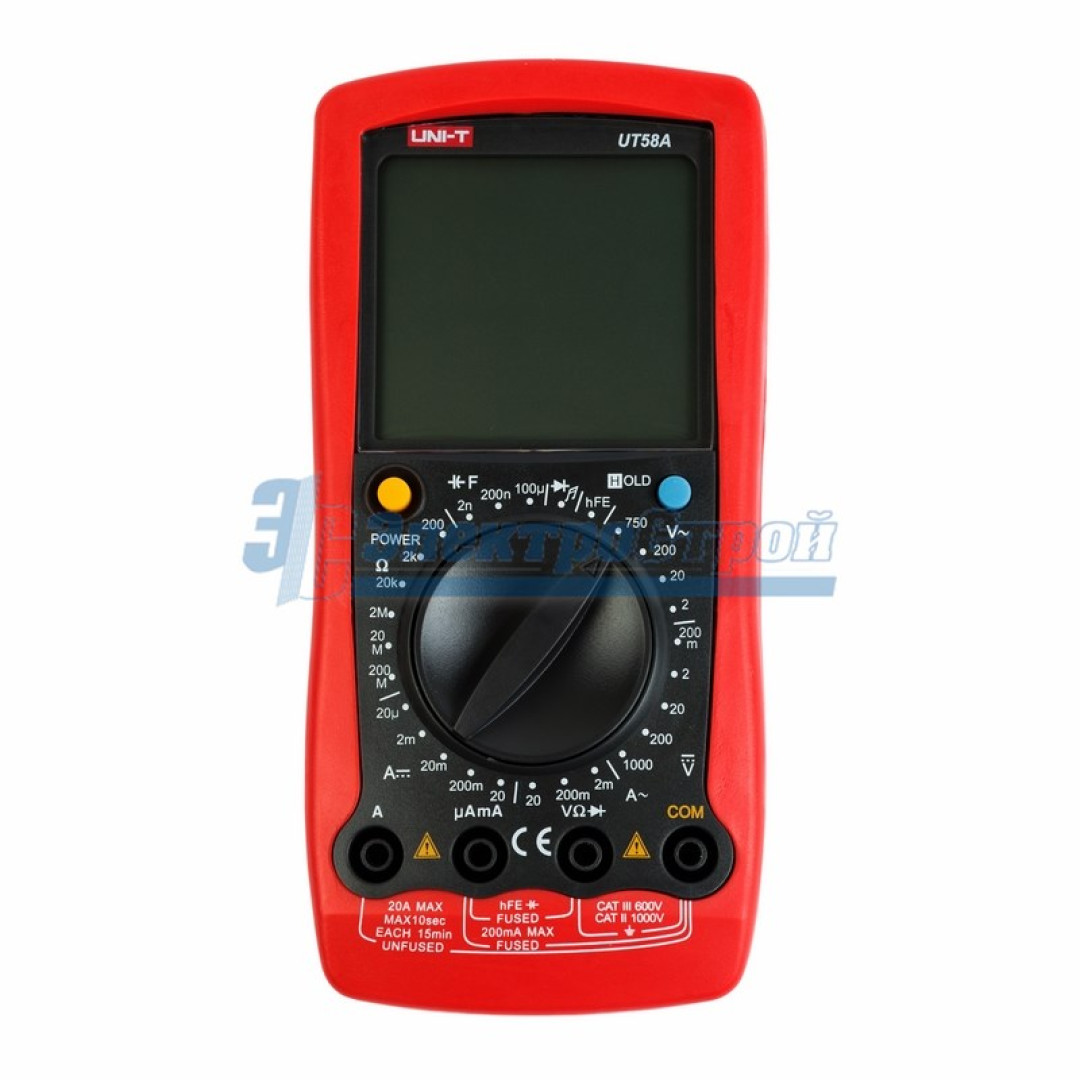 UT58A — это профессиональный мультиметр с современным и эргономичным дизайном. Предназначен прибор для измерений постоянного и переменного напряжения, сопротивления, постоянного и переменного тока. Кроме того, он имеет функции измерения электрической емкости, а также с его помощью вы сможете тестировать диоды и проводить прозвонку целостности цепи. Данный прибор обладает высоким классом точности показаний. Дисплей прибора оснащен подсветкой, которая позволяет проводить измерения даже в слабоосвещенных местах.
