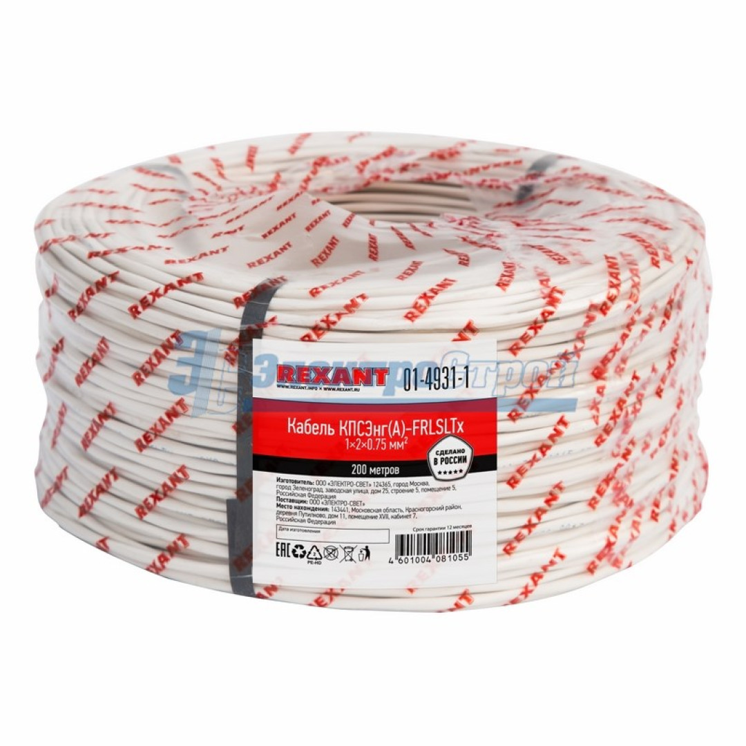 Кабель КПСЭнг(А)-FRLSLTx1x2x0,75 мм REXANT симметричный парной скрутки, огнестойкий, безгалогенный, не распространяющий горение при групповой прокладке и не выделяющий коррозионно-активных газообразных продуктов при горении и тлении, низкий уровень токсичности.