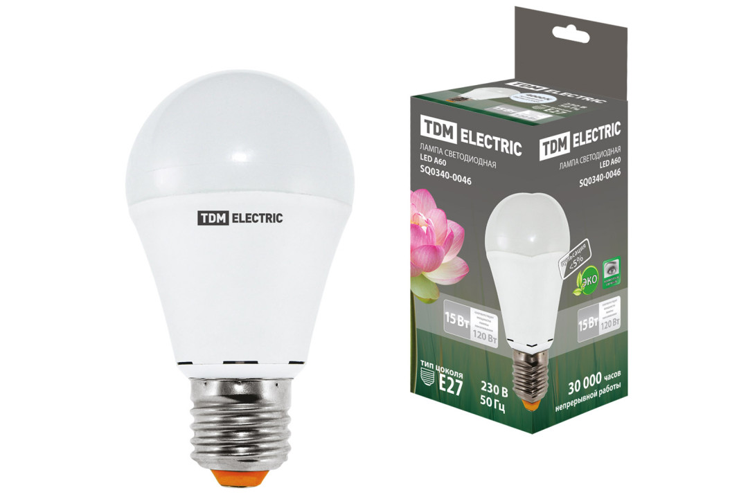Лампа светодиодная А60 - 15 Вт-220 В -4000 К–E27 TDM