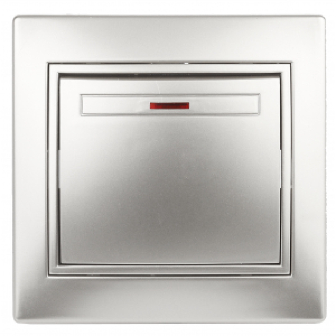 1-102-03 Intro Выключатель с подсветкой, 10А-250В, IP20, СУ, Plano, алюминий