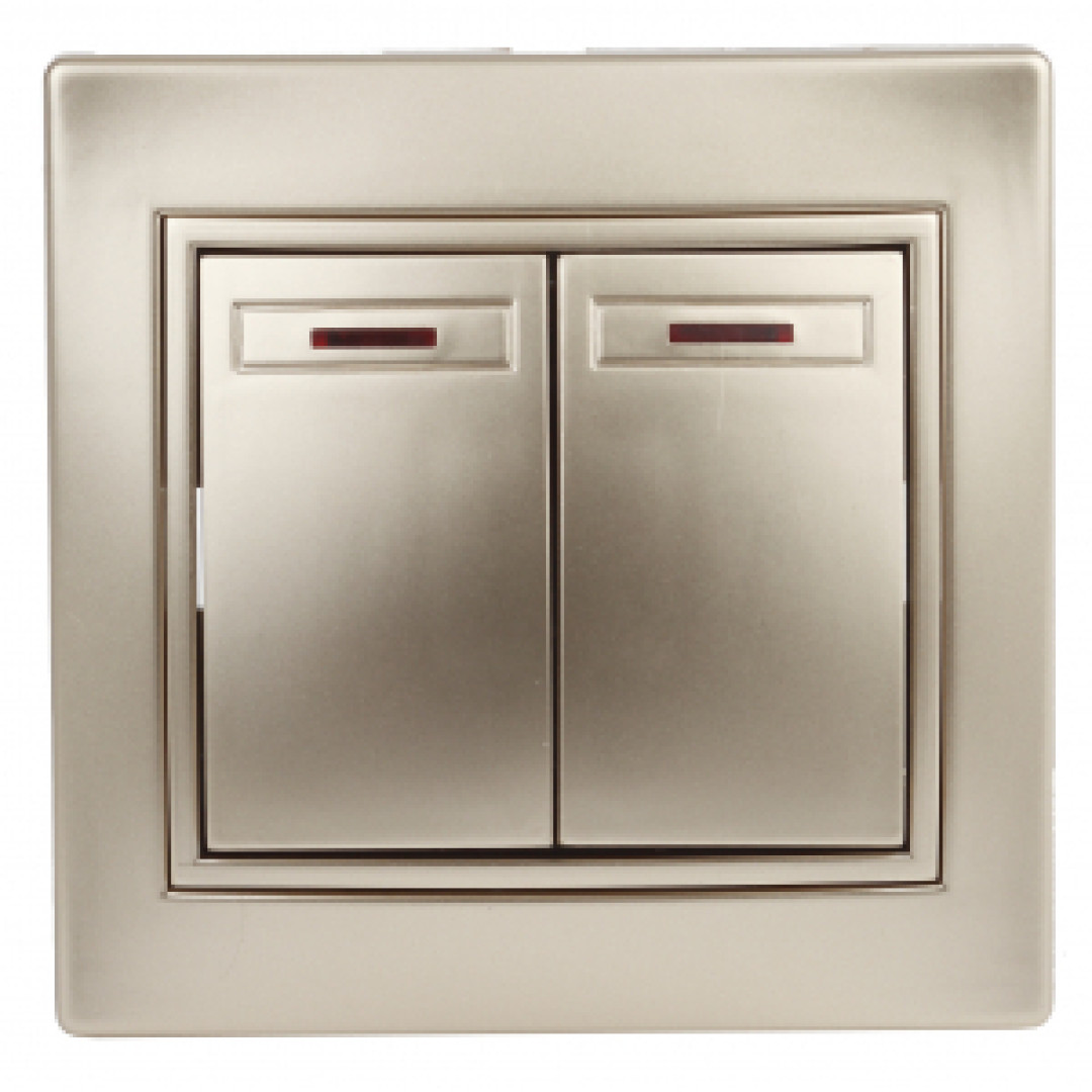 1-105-04 Intro Выключатель двойной с подсветкой, 10А-250В, IP20, СУ, Plano, шампань