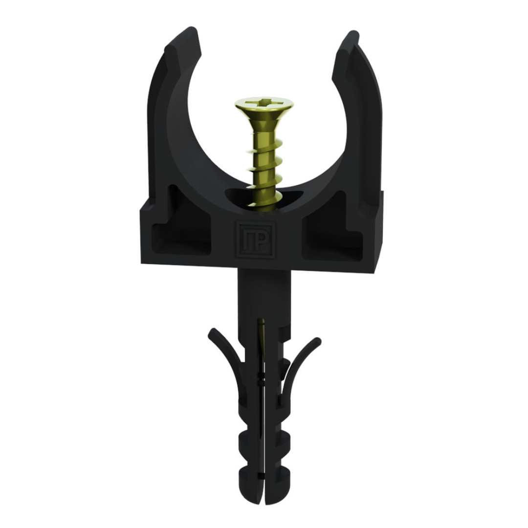 Крепеж-клипса с дюбелем и саморезом черная д32 в малой упаковке (10шт/450шт уп/кор) Промрукав