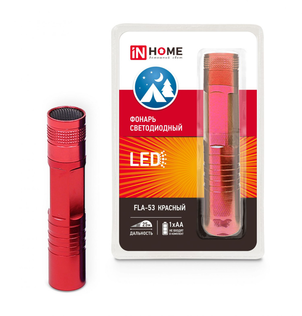 Фонарь светодиодный FLA-53 алюминиевый 1хLED 1хАА КРАСНЫЙ IN HOME