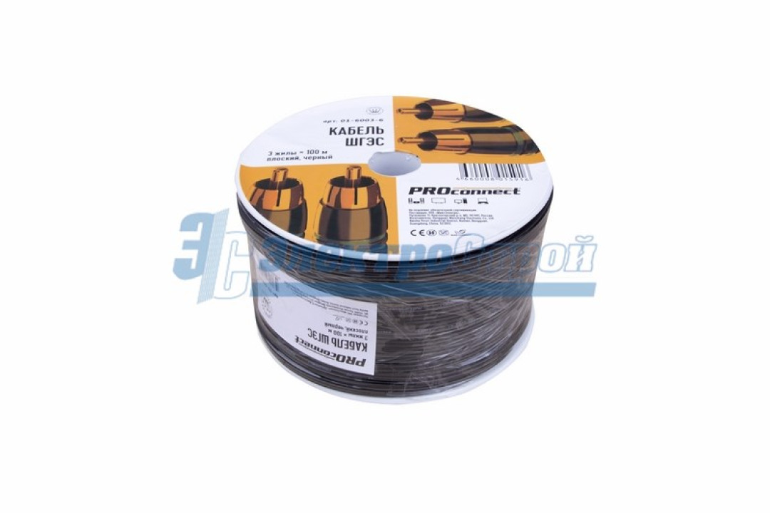 Кабель ШГЭС, 3 жилы, плоский, черный, 100 м., LT PROCONNECT