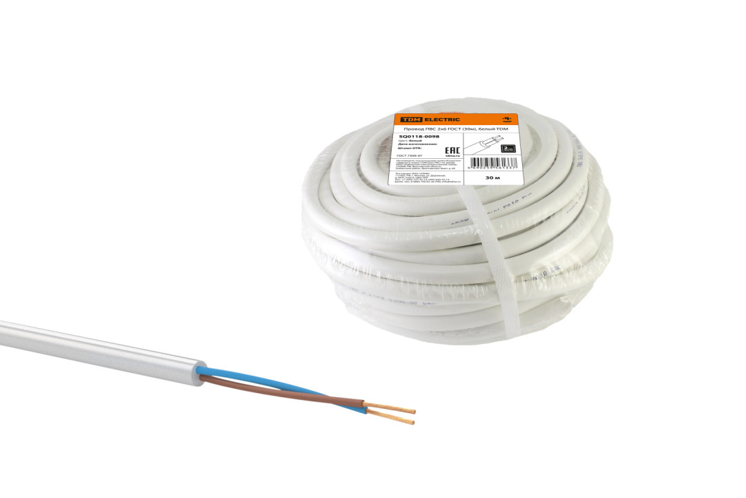 Провод ПВС 2х6 ГОСТ (30м), белый TDM
