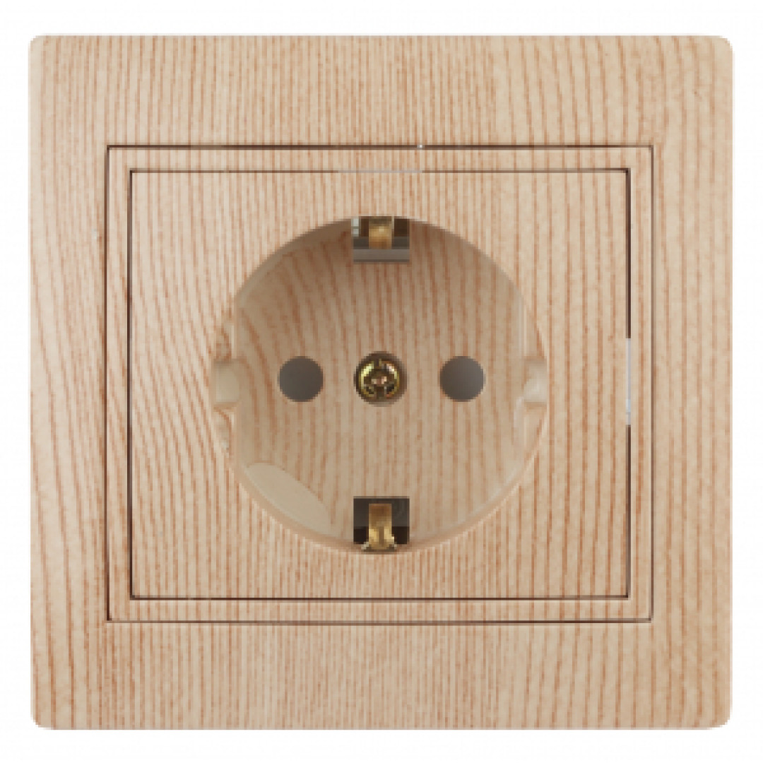1-206-11 Intro Розетка 2P+E Schuko со шторками, 16А-250В, IP20, СУ, Plano, сосна