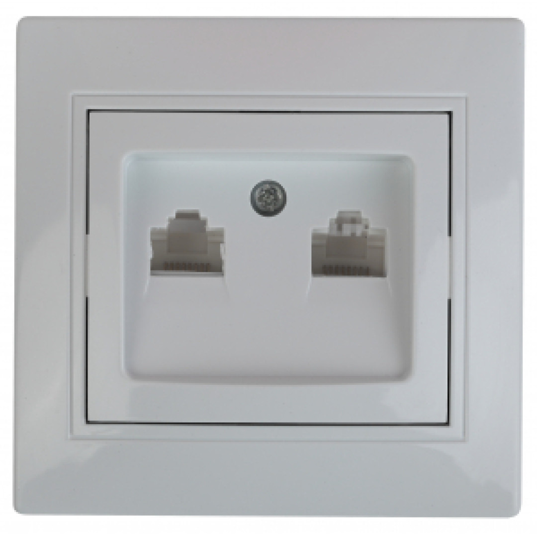 3-203-01 Intro Розетка 2х2P, 16А-250В, IP20, ОУ, Polo, белый (16/320)