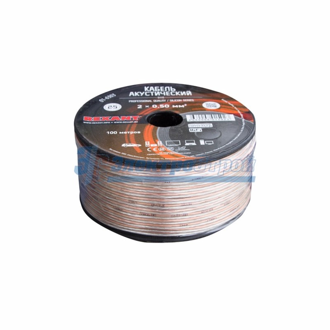 Кабель акустический, 2х2.50 мм², прозрачный BLUELINE, 100 м. REXANT
