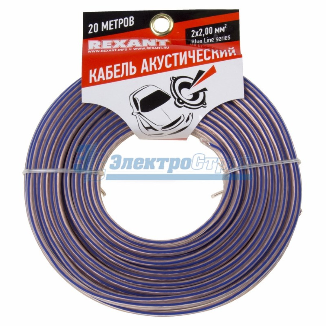 Кабель акустический, 2х2.00 мм², прозрачный BLUELINE, 20 м. REXANT
