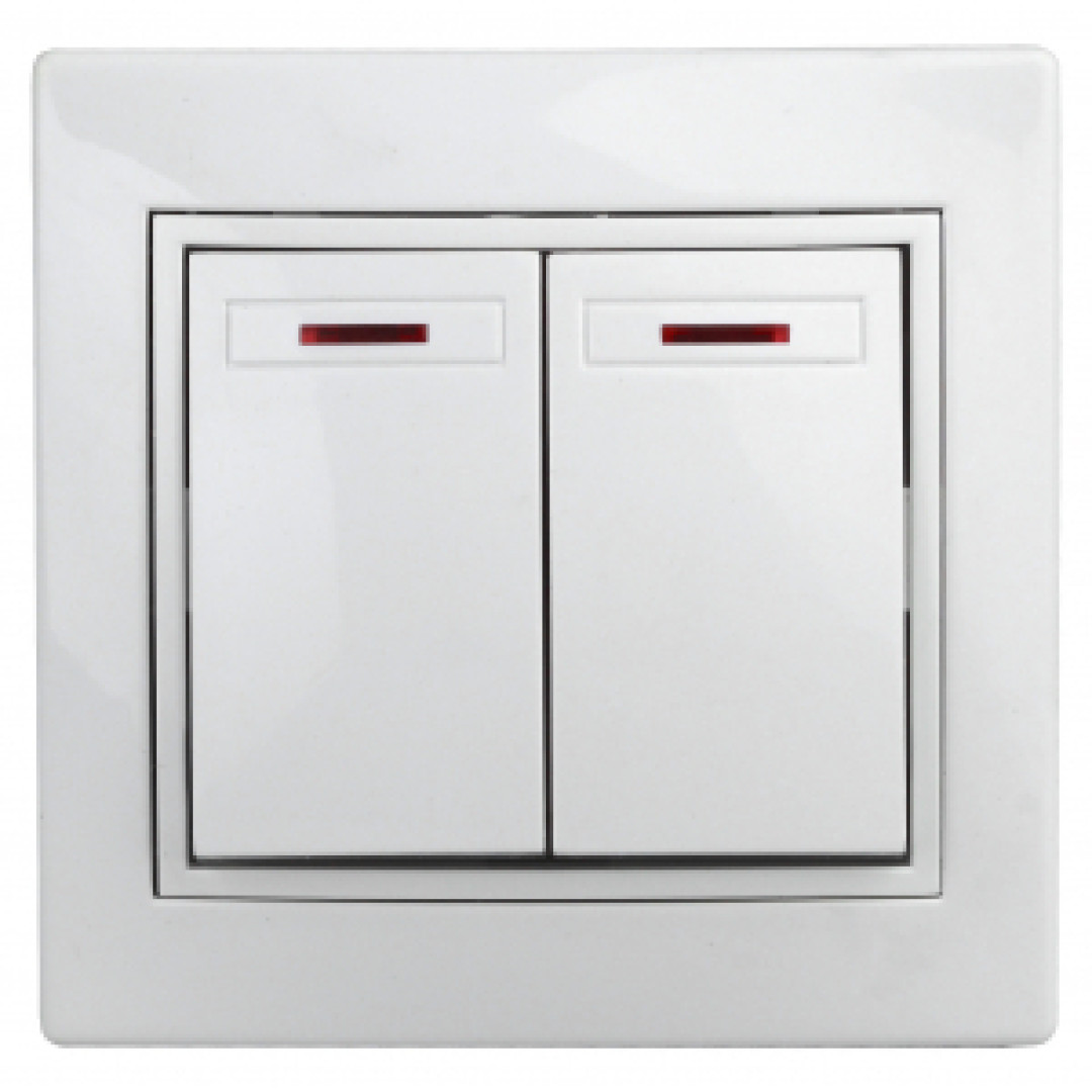 1Э-105-01 Intro Выключатель двойной с подсветкой, 10А-250В, СУ, б.л., Plano, белый
