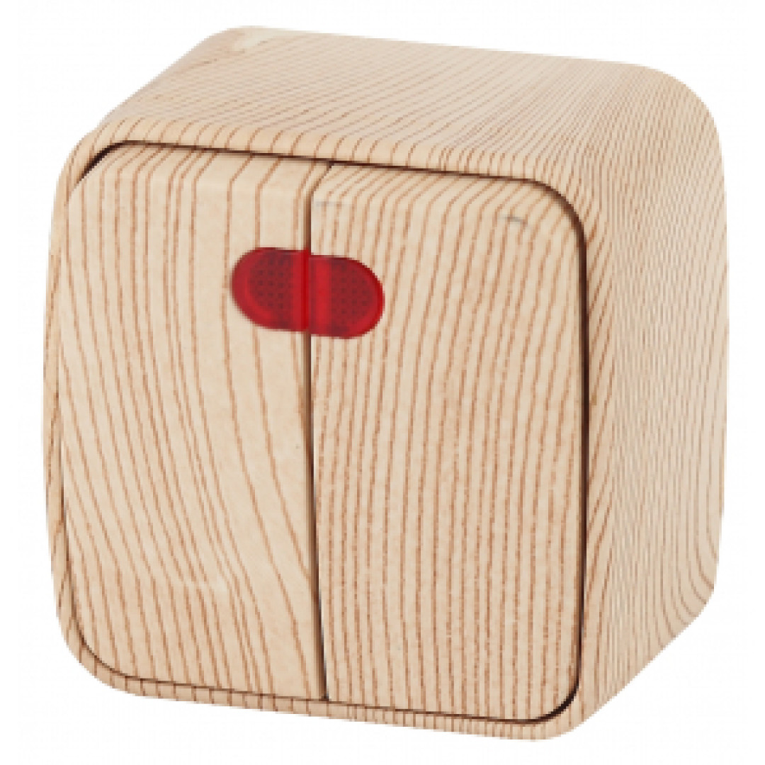 3-105-11 Intro Выключатель двойной с подсветкой, 10А-250В, IP20, ОУ, Polo, сосна