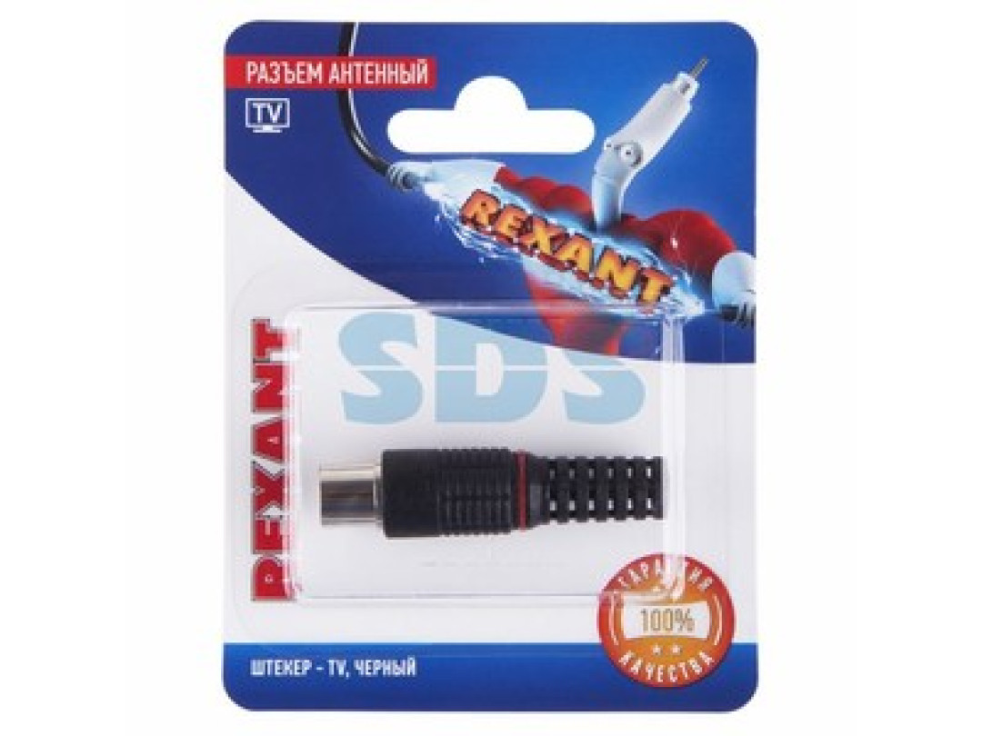 Разъем антенный на кабель, (штекер-TV), черный, (1шт.) REXANT