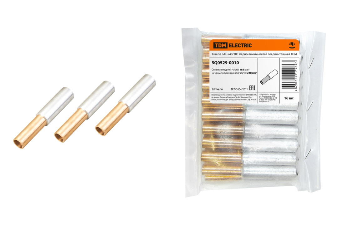 Гильза GTL-240/185 медно-алюминиевая соединительная TDM