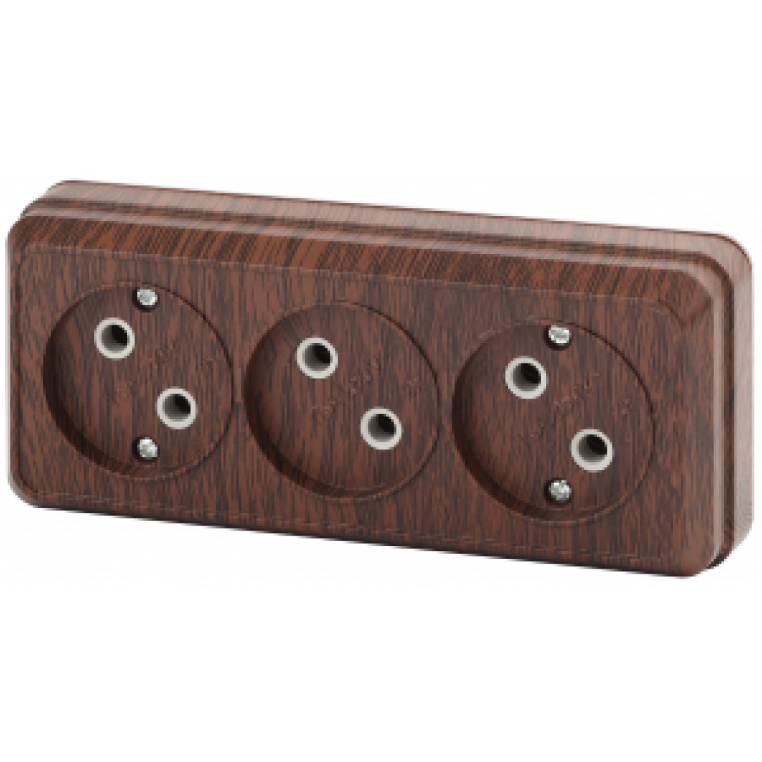 2-205-10 Intro Розетка 3х2P, 16А-250В, IP20, ОУ, Quadro, венге