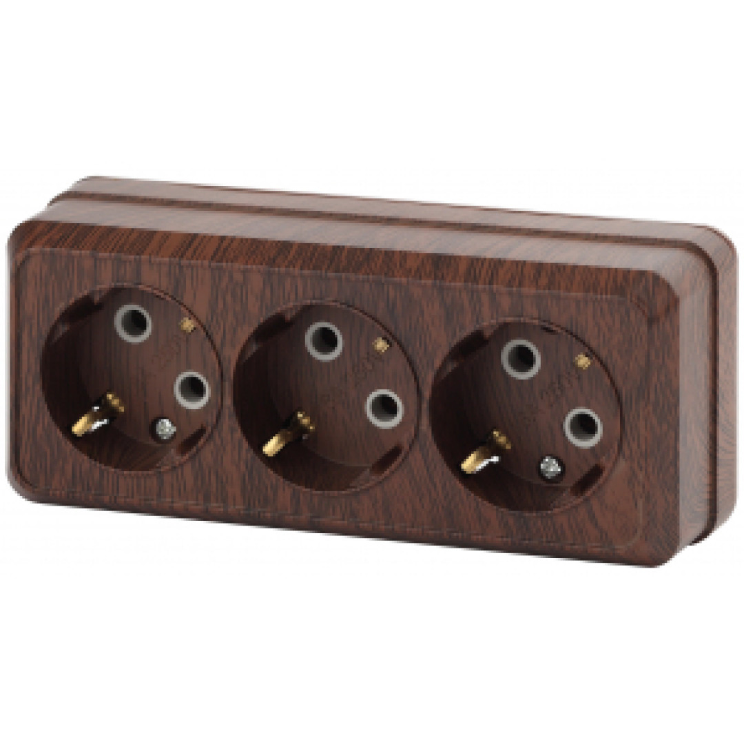 2-206-10 Intro Розетка 3х2P+E, 16А-250В, IP20, ОУ, Quadro, венге