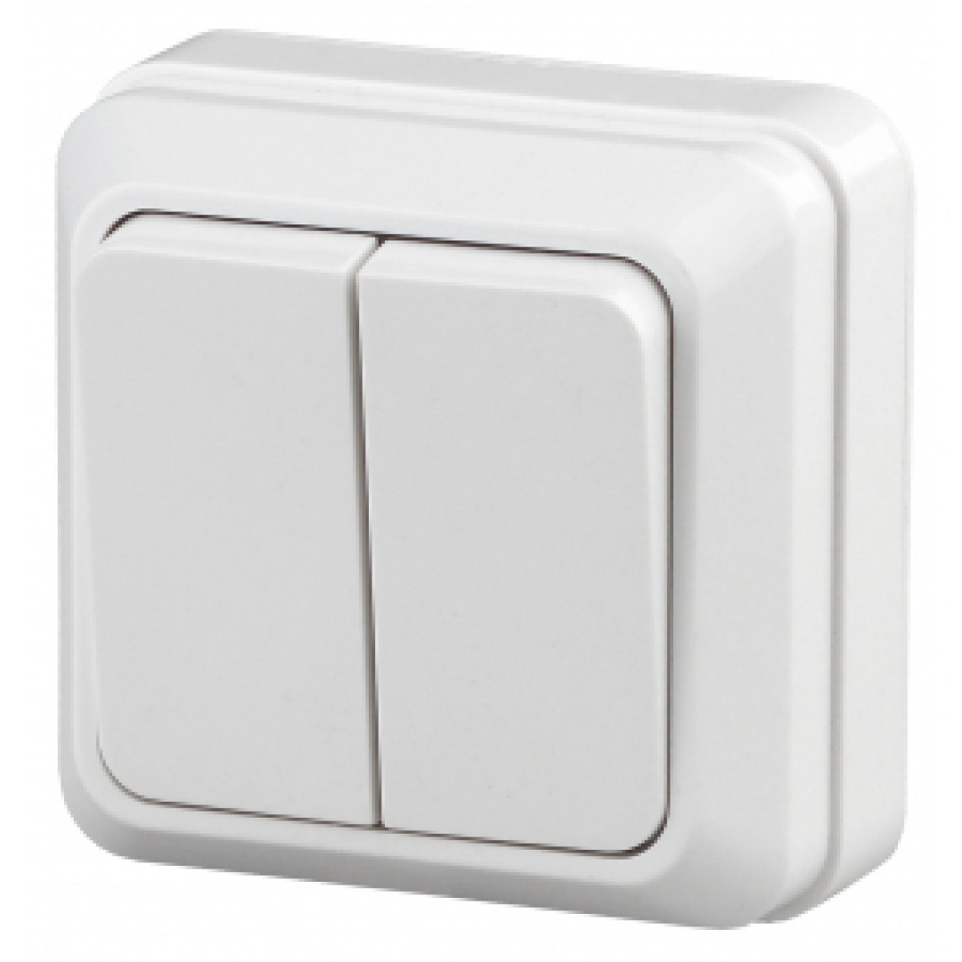 2Э-104-01 Intro Выключатель двойной, 10А-250В, ОУ, б.м.п., Quadro, белый