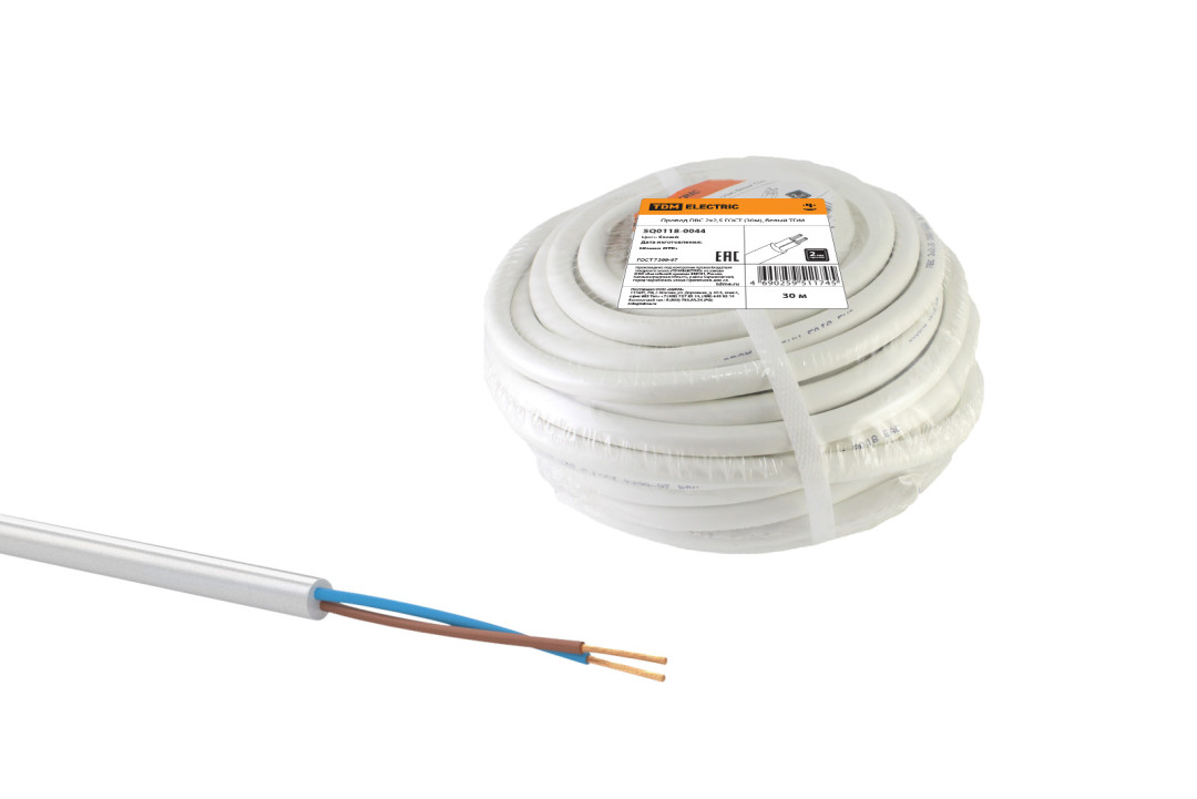 Провод ПВС 2х2,5 ГОСТ (30м), белый TDM