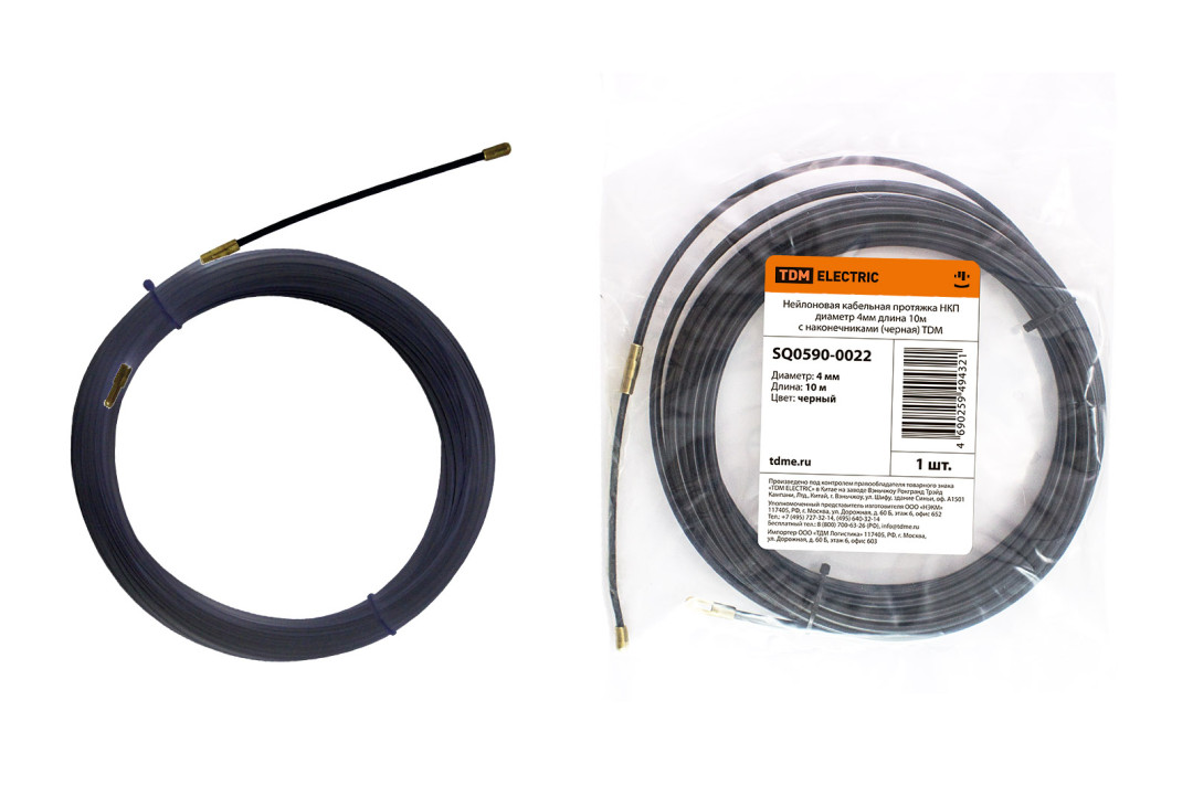 Нейлоновая кабельная протяжка НКП диаметр 4мм длина 10м с наконечниками (черная) TDM