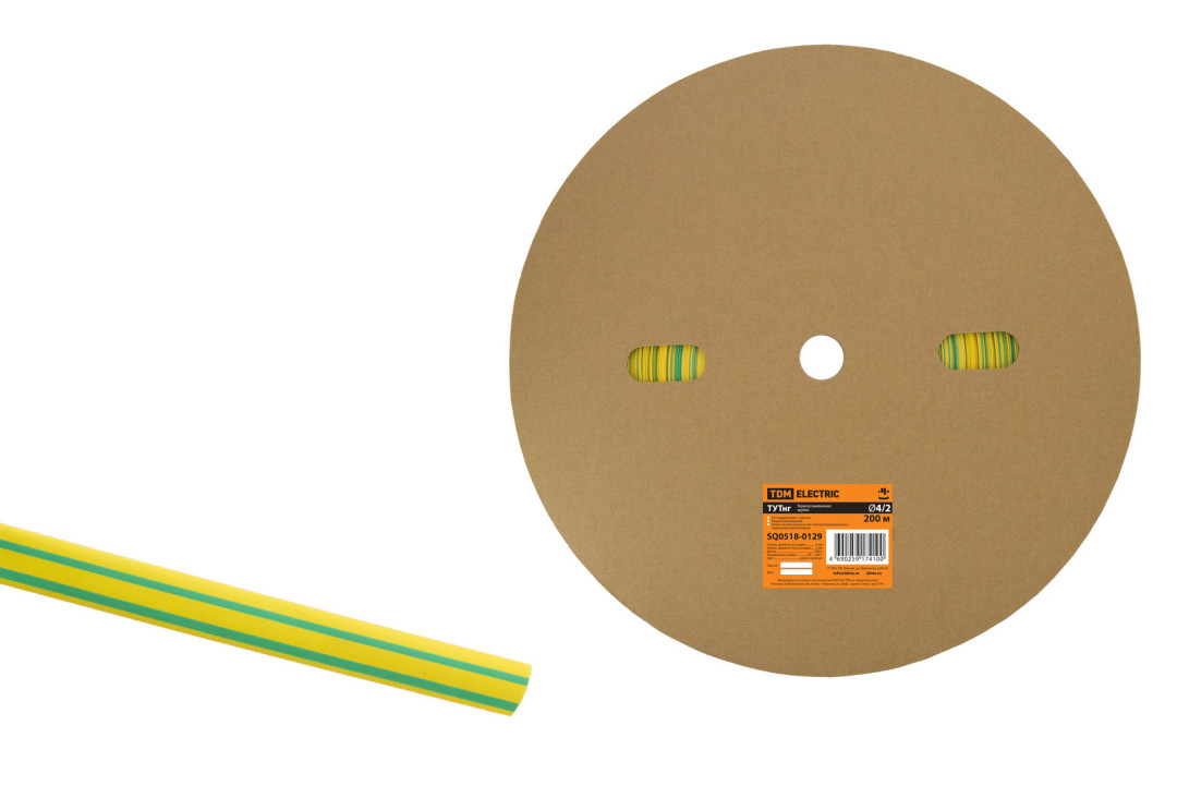 Термоусаживаемая трубка ТУТнг 4/2 желто-зеленая (200 м/ролл) TDM