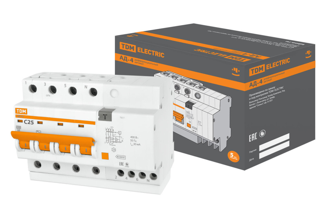 Диф.автомат АД-4 4Р 25А 30мА TDM