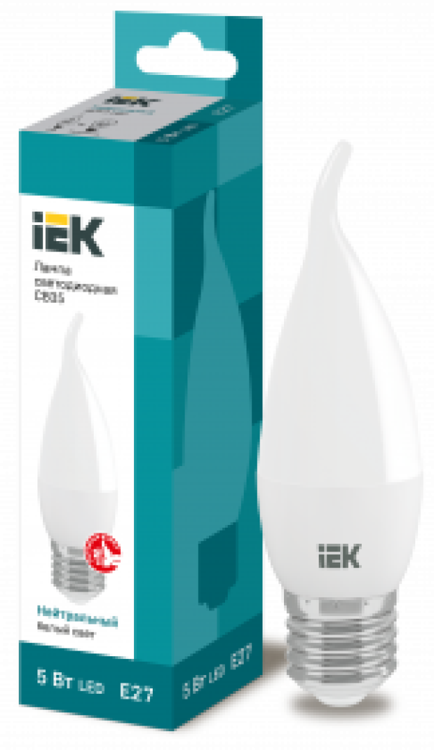 Лампа светодиодная ECO CB35 свеча на ветру 5Вт 230В 4000К E27 IEK