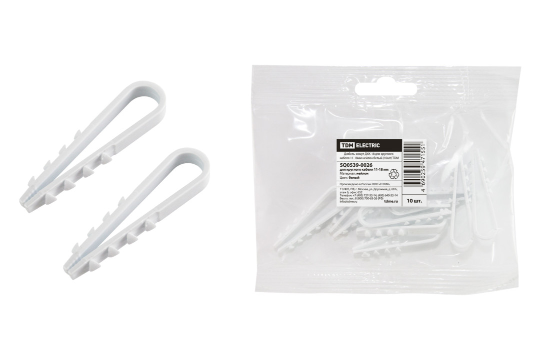 Дюбель-хомут ДХК-18 для круглого кабеля 11-18мм нейлон белый (10шт) TDM