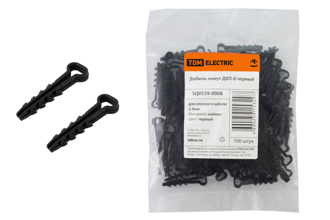Дюбель-хомут ДХП-8 для плоского кабеля 5-8мм нейлон черный (100шт) TDM