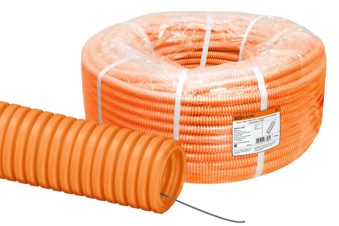 Труба гофр.ПНД d 40 с зондом (25 м) легкая оранжевая TDM
