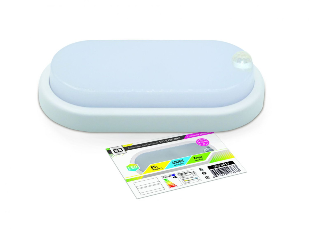 Светильник светодиодный герм СПП-Д 2203 8Вт 230В 4000К 640Лм 198х100мм с датчиком движения ОВАЛ IP65
