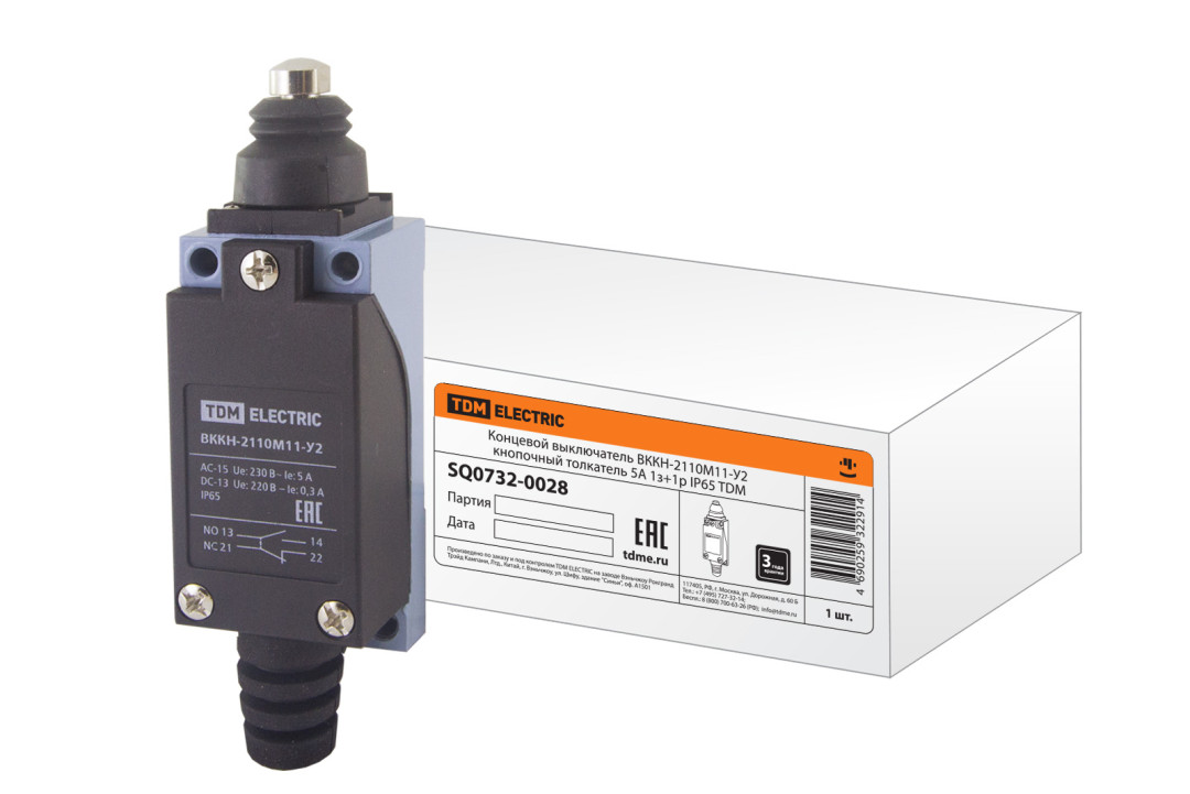 Концевой выключатель ВККН-2110М11-У2 кнопочный толкатель 5А 1з+1р IP65 TDM