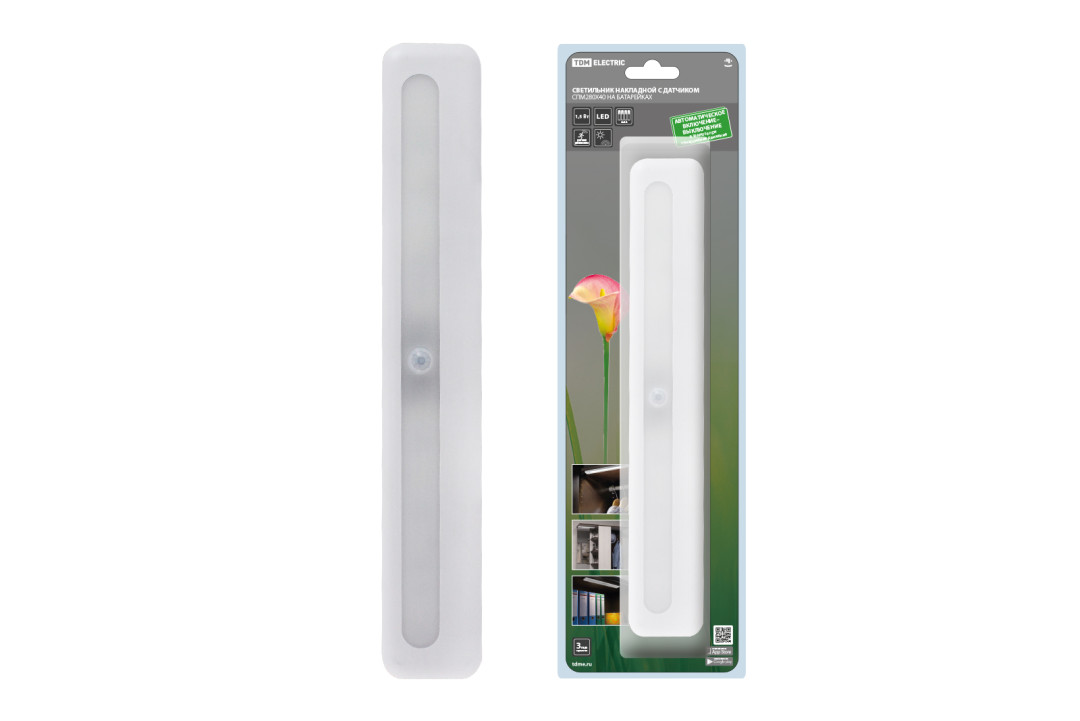 Светильник накладной светодиодный 280х40, 1,5 Вт, 4хАА, дат. движ. и освещ., TDM