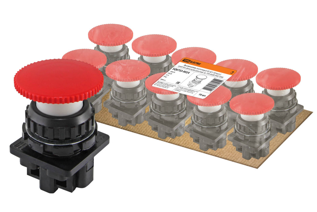 Выключатель кнопочный КЕ 021-У2-исп.5 гриб без фиксации красный 1р 10A 660B IP40 TDM