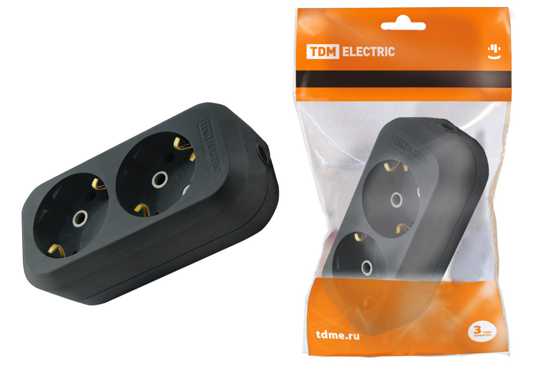 Колодка розеточная 2 гнезда 2П+З 16А 250В черная TDM