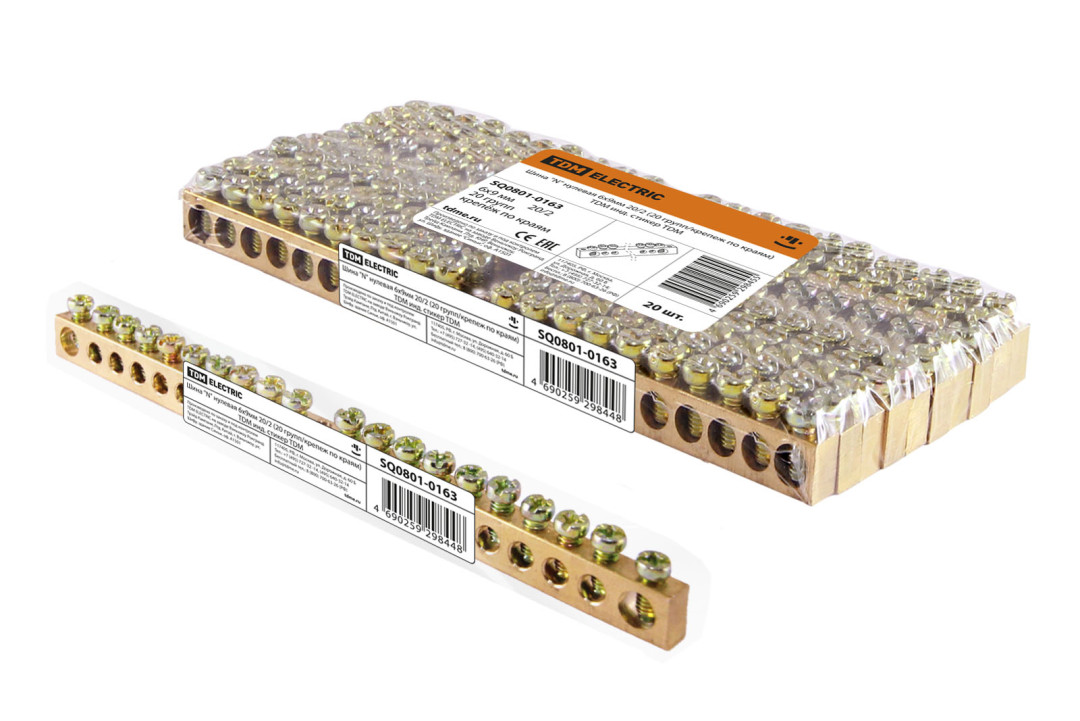 Шина "N" нулевая 6х9мм 20/2 (20 групп/крепеж по краям) TDM инд. стикер TDM