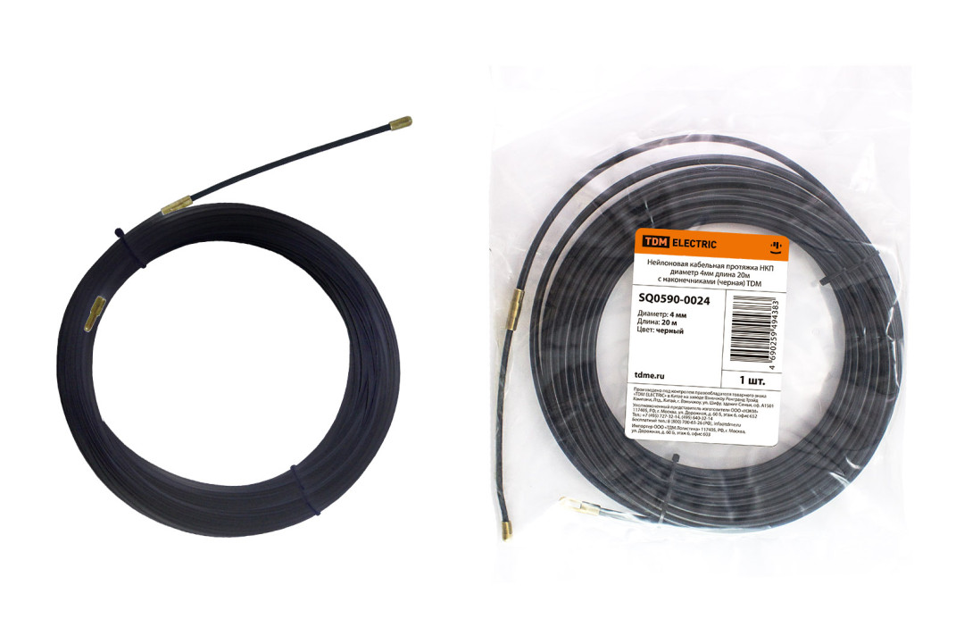 Нейлоновая кабельная протяжка НКП диаметр 4мм длина 20м с наконечниками (черная) TDM
