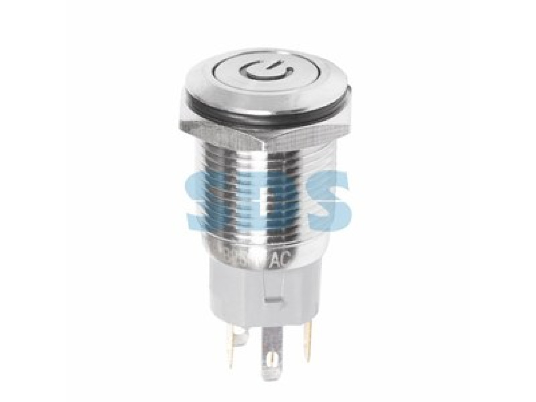 Кнопка антивандальная Ø16 250В Б/Фикс (5с) (ON)-OFF плоская подсв/синяя POWER REXANT