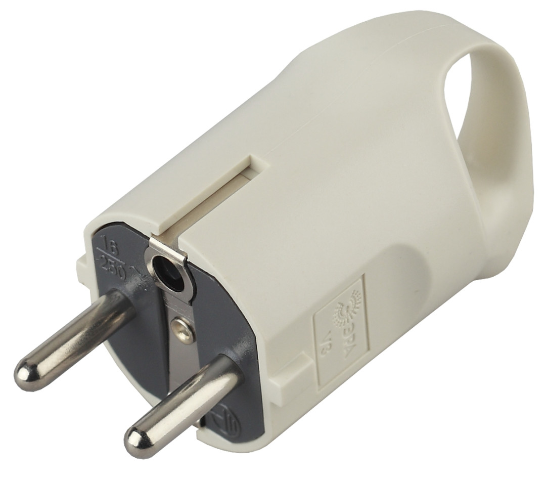 Вилка ЭРА V3 c заземлением 16A с кольцом непрямой ввод белая