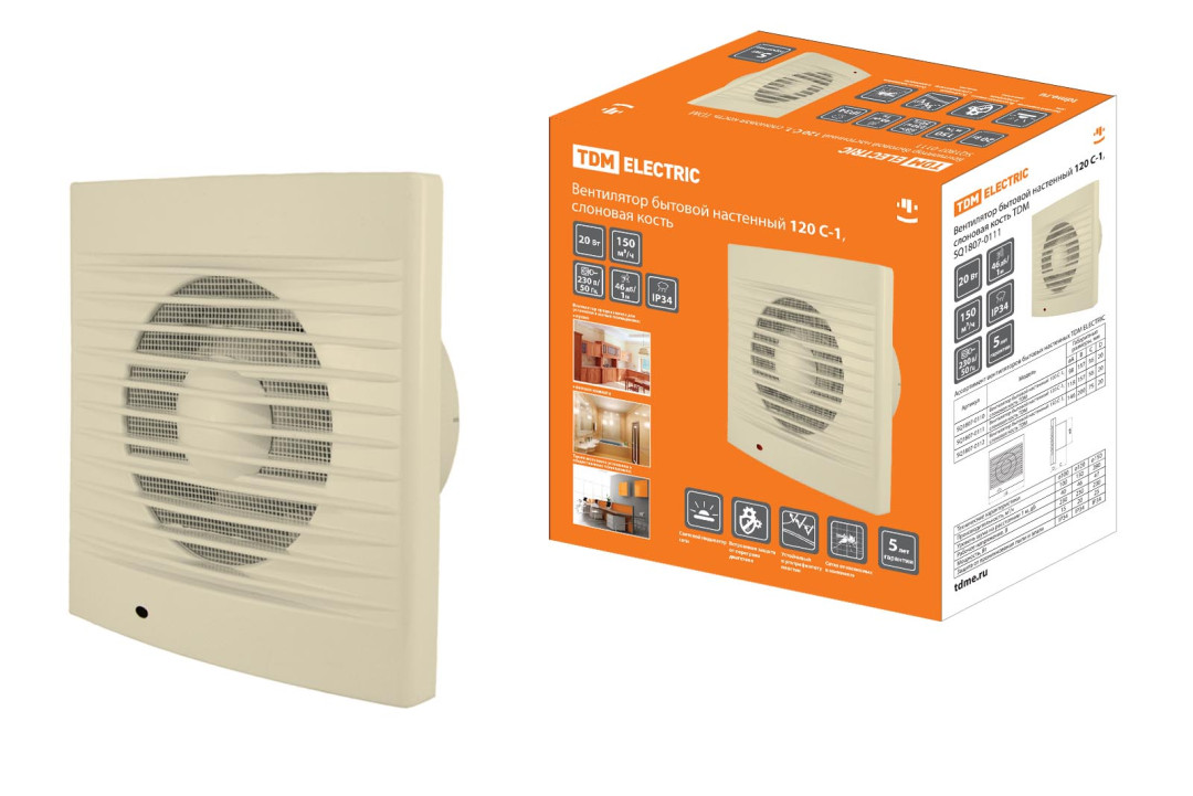 Вентилятор бытовой настенный 120 С-1, слоновая кость TDM