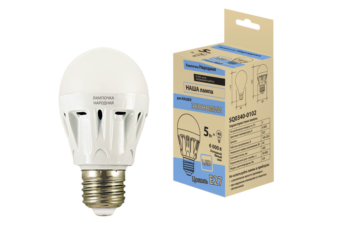 Лампа Народная светодиодная НЛ-LED-A60 5 Вт-6000 К-Е27 (60х105)