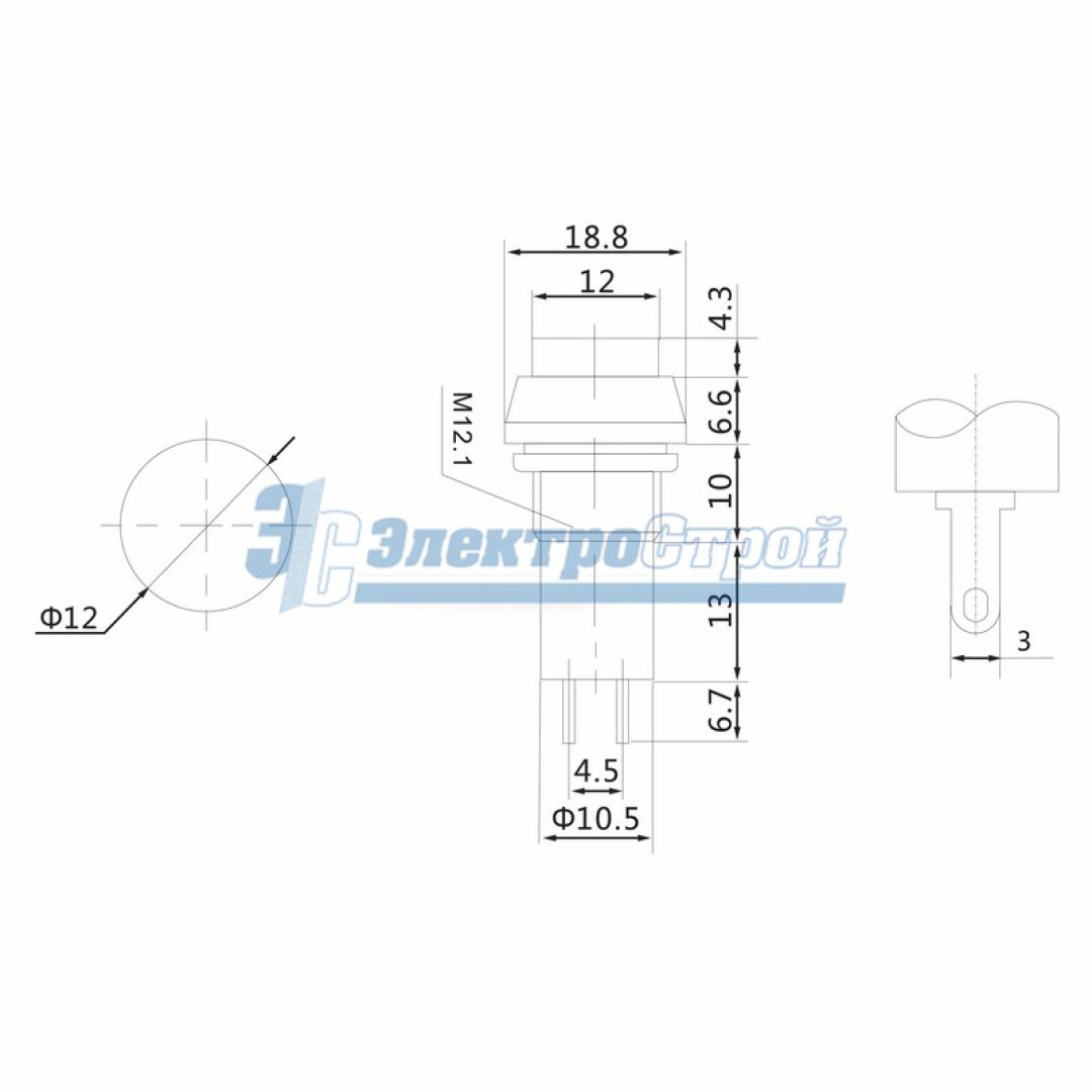 Выключатель-кнопка 250V 1А (2с) ON-OFF красная REXANT