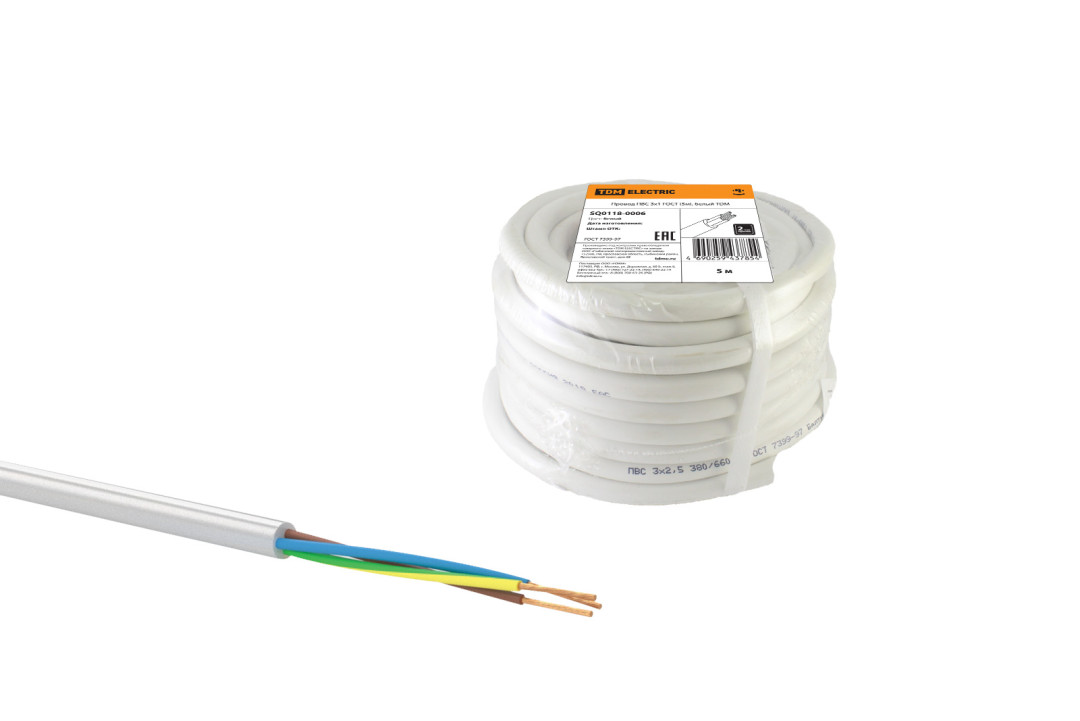 Провод ПВС 3х1 ГОСТ (5м), белый TDM