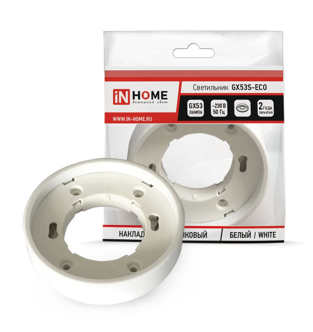 Светильник накладной GX53S-RW-ECO пластик под лампу GX53 230В белый IN HOME