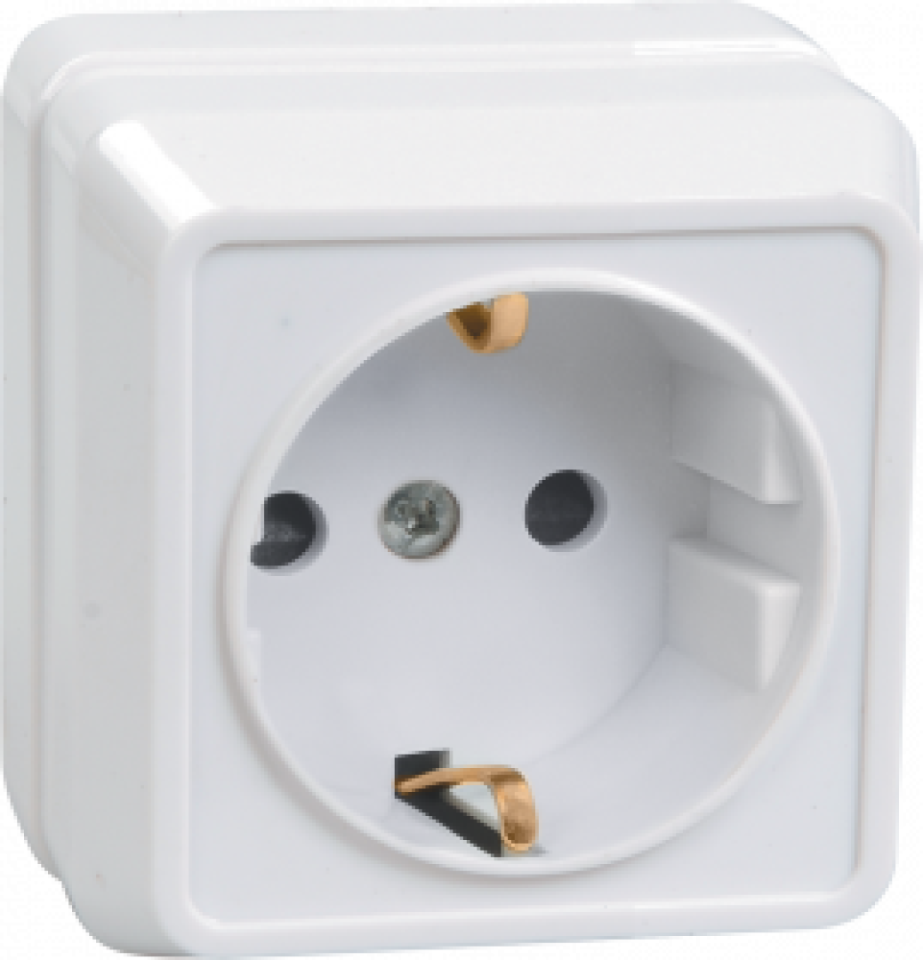 GLOSSA РОЗЕТКА с заземлением со шторками с крышкой, 16А, IP20, в сборе, БЕЛЫЙ