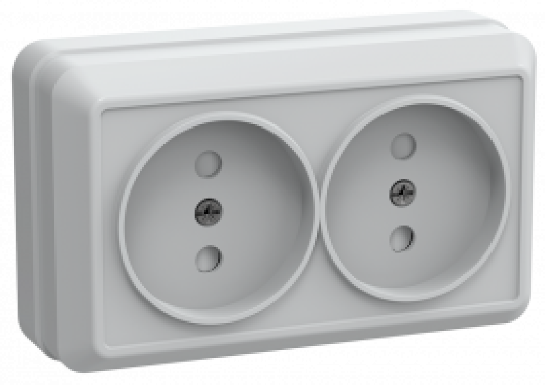 РСш22-2-ОБ Розетка 2местн. без з/к с защ.штор.10А откр.уст. ОКТАВА (белый)